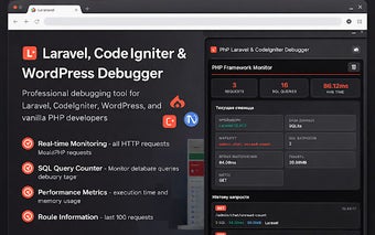Php Laravel & CodeIgniter Debugger to darmowe rozszerzenie do przeglądarki Chrome, które umożliwia monitorowanie aplikacji opartych na Laravel, CodeIgniter oraz WordPress w panelu bocznym. Użytkownicy mogą śledzić zapytania SQL, czas wykonania oraz zużycie pamięci, co ułatwia proces debugowania. Narzędzie nie ingeruje w DOM strony, co sprawia, że jest bardziej przyjazne w użyciu podczas rozwoju aplikacji.